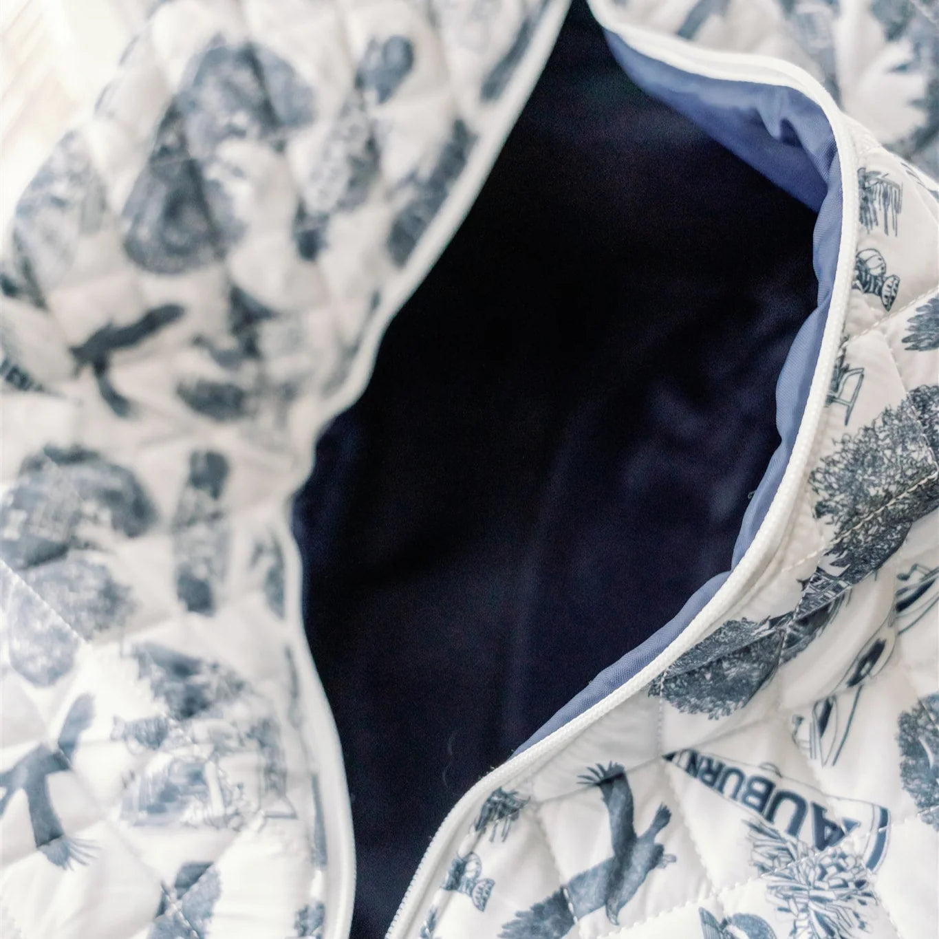 Our quilted Auburn duffle is the perfect blend of practicality and school spirit. Featuring iconic Auburn landmarks and symbols in a charming, detailed print, this bag is a stylish way to show off your love for the university. Its spacious interior and durable quilted fabric make it ideal for travel, sports events, or everyday use, while the comfortable straps ensure easy carrying. Whether you’re heading to class or the game, this duffle brings a touch of Auburn pride to your day.