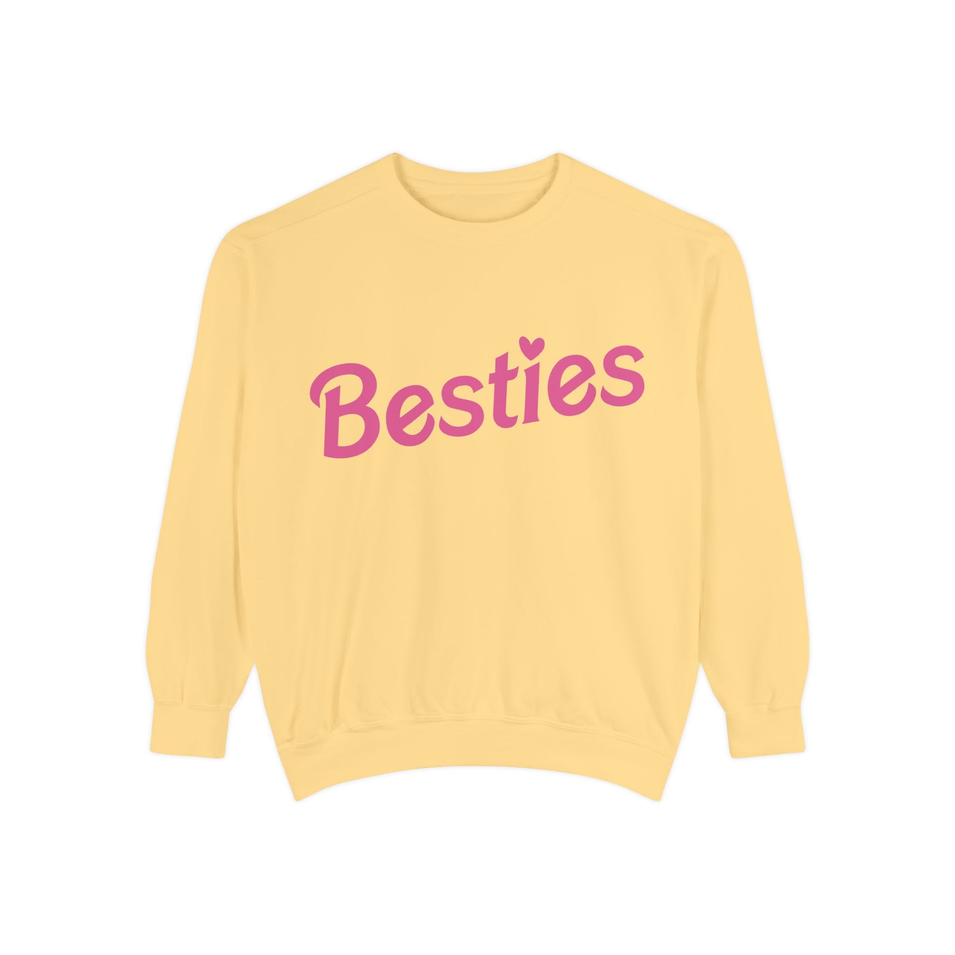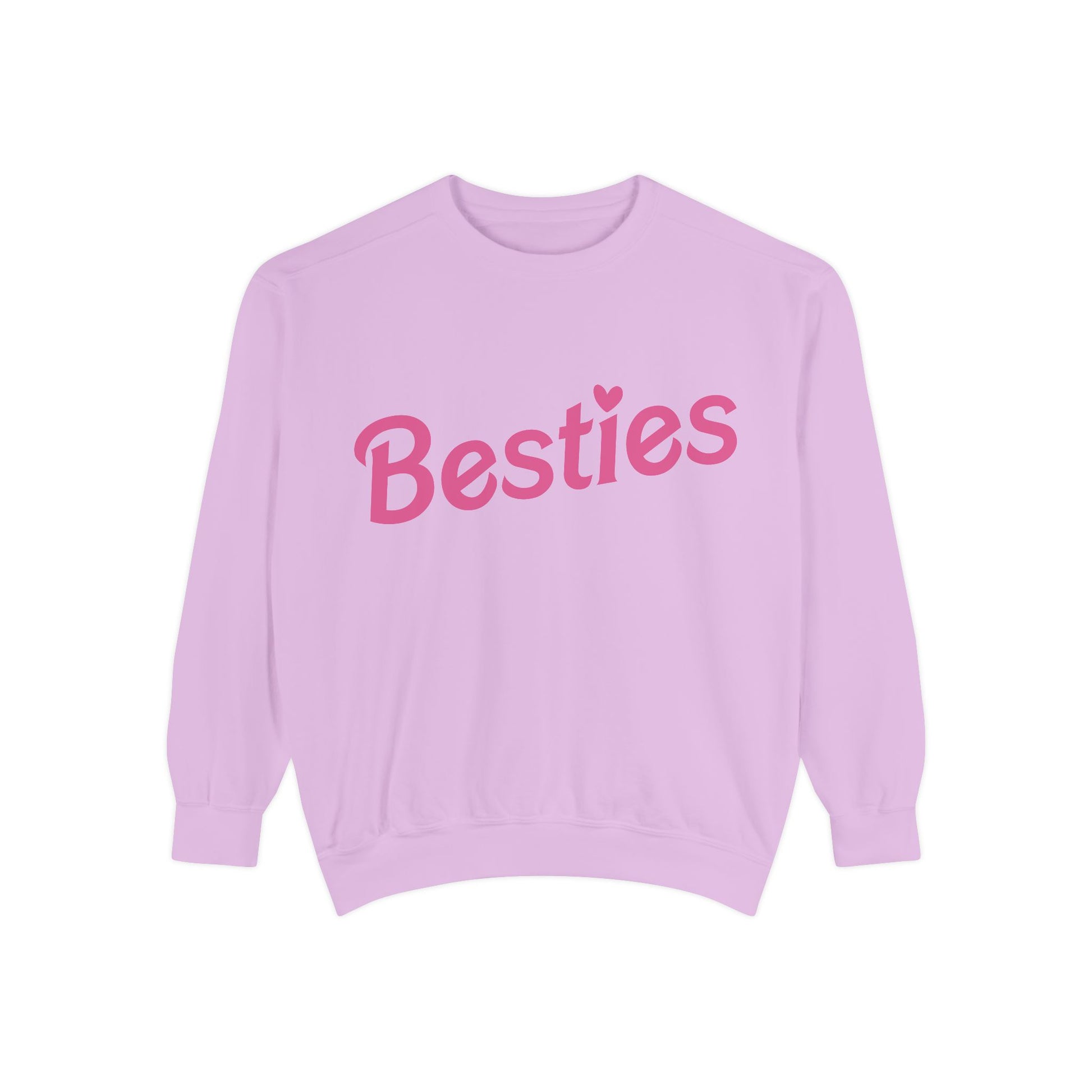 Bestie Barbie inspired sweatshirt to match with your bestie - great gifts and such a fun mother-daughter duo or for Barbie themed events or bachelorettes. This garment gives off a playful and stylish vibe, perfect for those who love matching outfits and themed occasions.