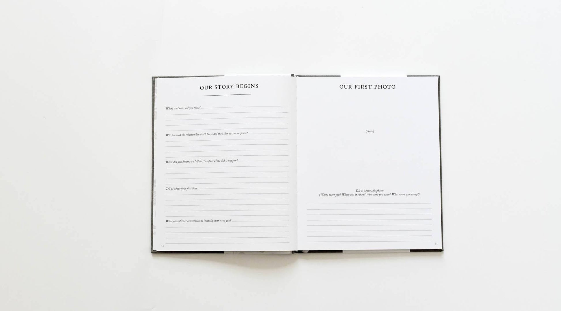 SECTIONS INCLUDE: - Our Story Begins: From meeting, to dating, to the proposal - Questions for Her/Him: Prompted questions that help you share what you love about your fiancé and why you want to marry them. - Wedding Details: A few pages to highlight your wedding planning (dress shopping, showers, people involved, etc.) - Letters for Our Wedding Day: This is a space for both the bride and groom to write a letter to each other to be shared on the wedding day. You can also use it to hand write your vows! PRODUCT DETAILS: - linen bound hard cover with gold embossed title and spine - 7-3/4 x 9-1/4 size - 69 pages