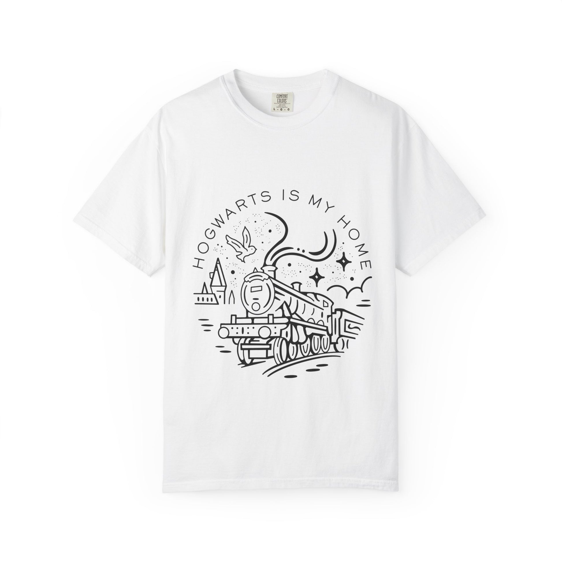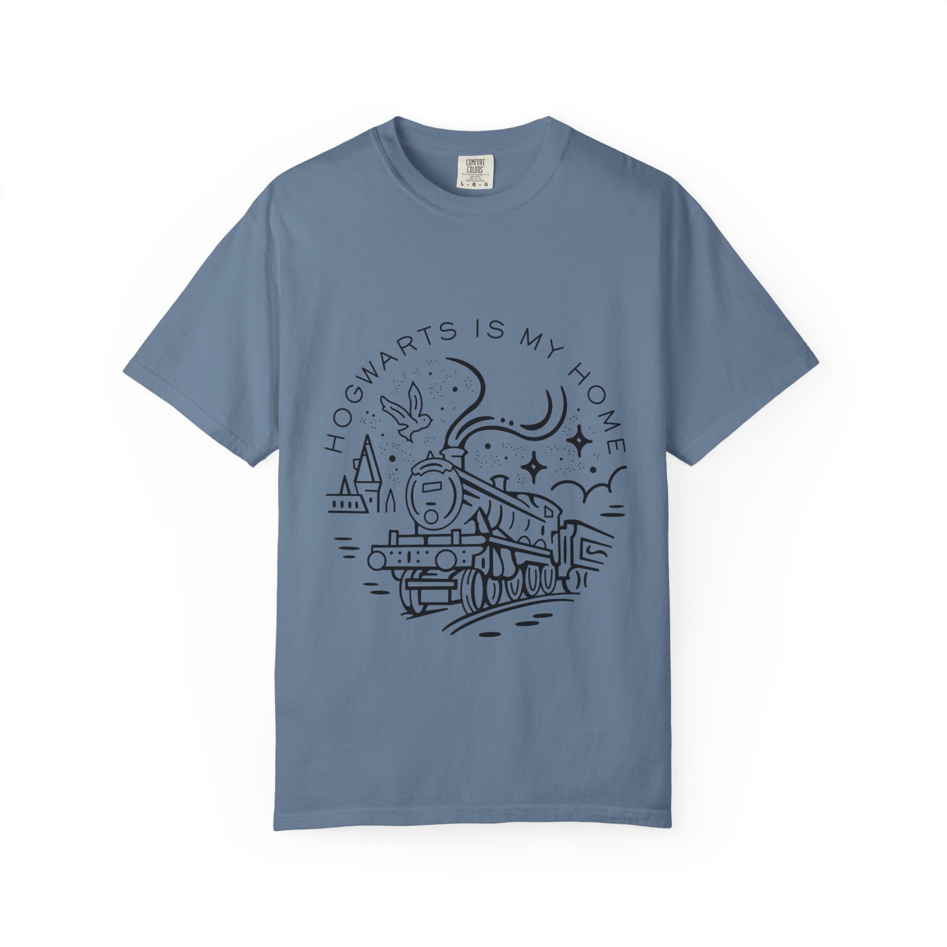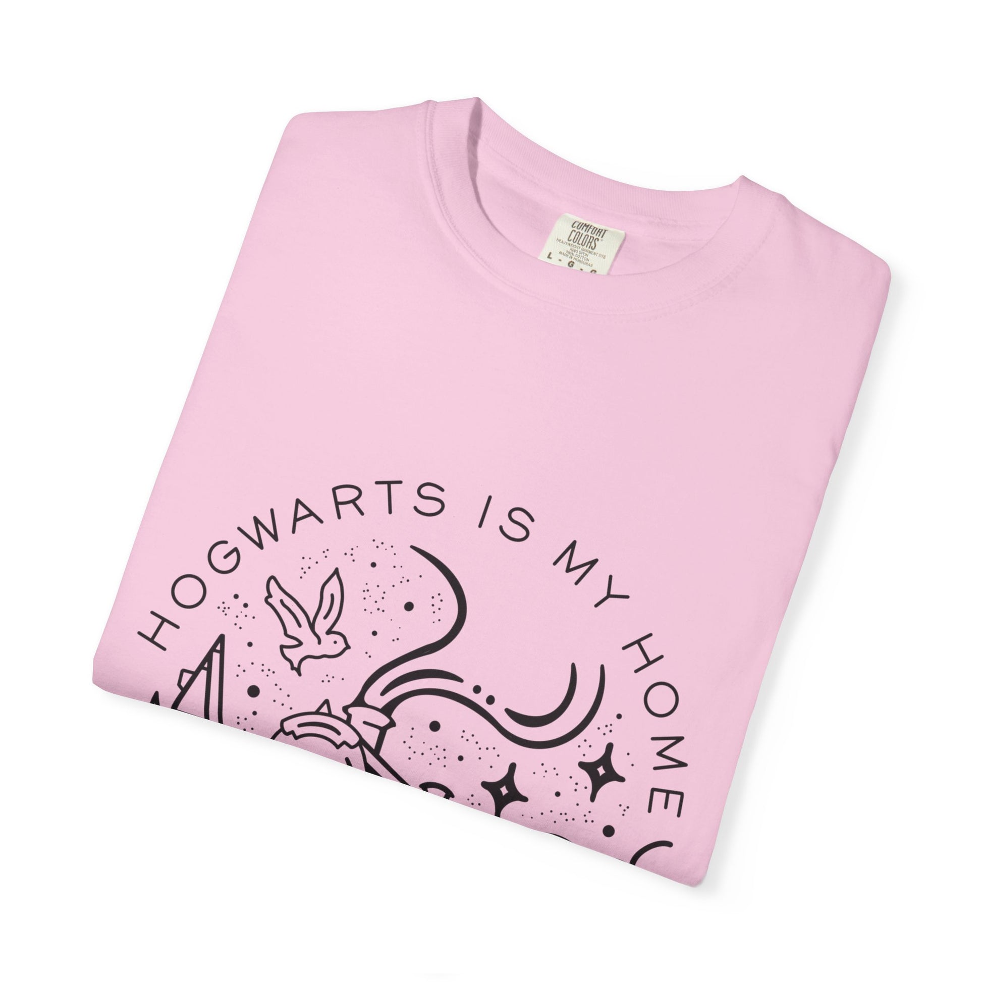 This Hogwarts Is My Home comfort colors t-shirt exudes a cozy and nostalgic vibe, perfect for Harry Potter fans. It's a must-have for fans who want to showcase their love for Hogwarts in a comfortable and stylish way. Great for everyday wear or as a casual statement piece. Ideal for Harry Potter enthusiasts, fans of the wizarding world, and those looking for a unique and timeless tee. Relevant for Harry Potter-themed parties, movie marathons, and fan conventions.