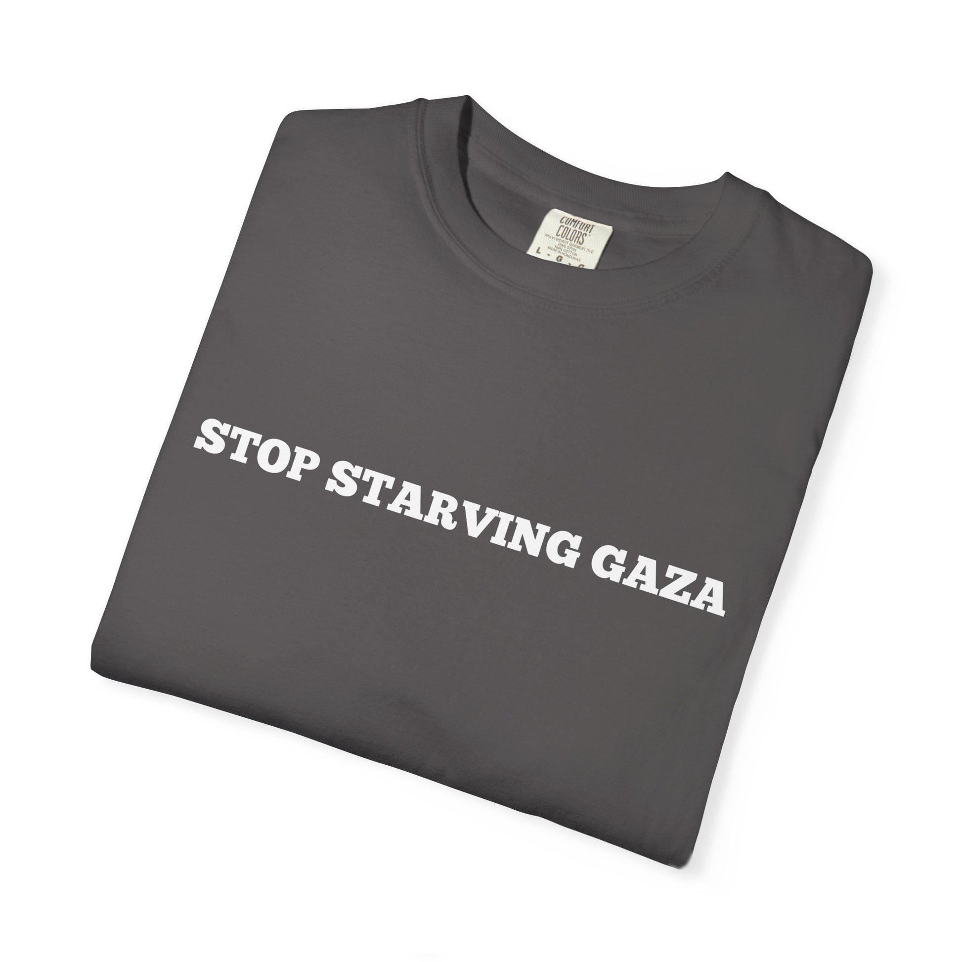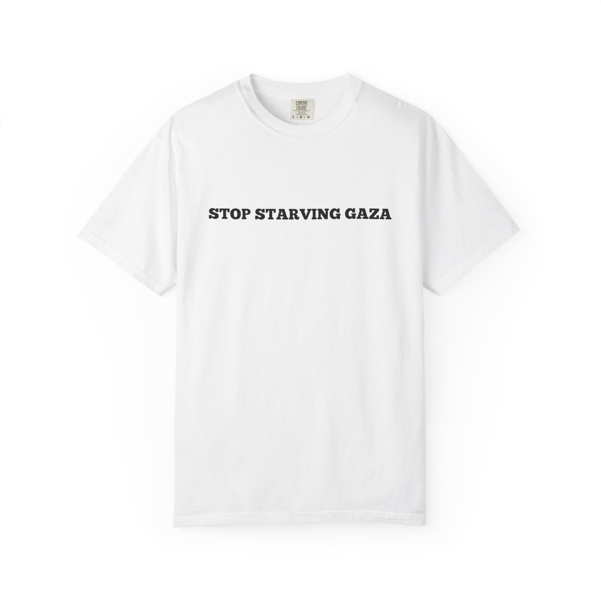 This Stop Starving Gaza Comfort Colors T-shirt is a powerful way to show support and speak out against the genocide in Palestine. The unisex design fits into both casual and semi-formal settings, making it a versatile addition to any wardrobe. Perfect for those looking to make a statement and advocate for justice in Palestine.